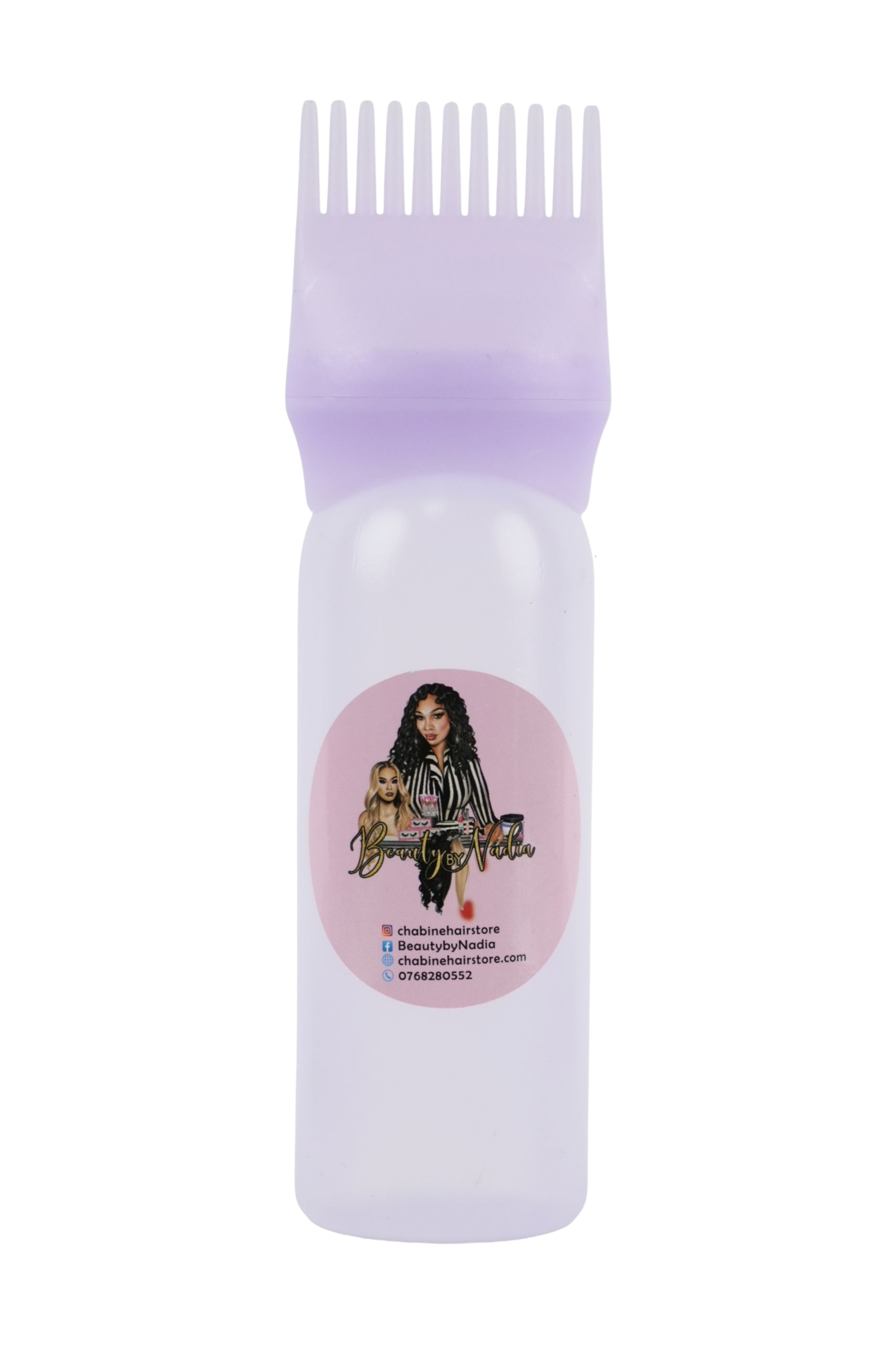 Ciblez vos racines pour un soin maximal. Cette bouteille munie d'un embout applicateur vous permet de déposer vos huiles et sérums directement sur le cuir chevelu. Évite le gaspillage et garantit une application uniforme et propre. Bouteille en plastique pour faire des bains d’huiles et des teintures avec peigne pour vos cheveux. Peut tenir 6Oj, 178ml.